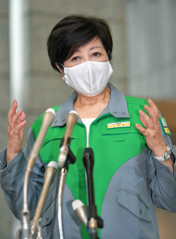 小池知事は、初当選時からイメージカラーとしている緑色が入った防災服姿で登庁。新型コロナウイルス対策について「東京の医療体制はかなり整っているが地方は厳しいところもある。東京に関係のある形で(感染が)広がるのを抑えていく」と述べた。