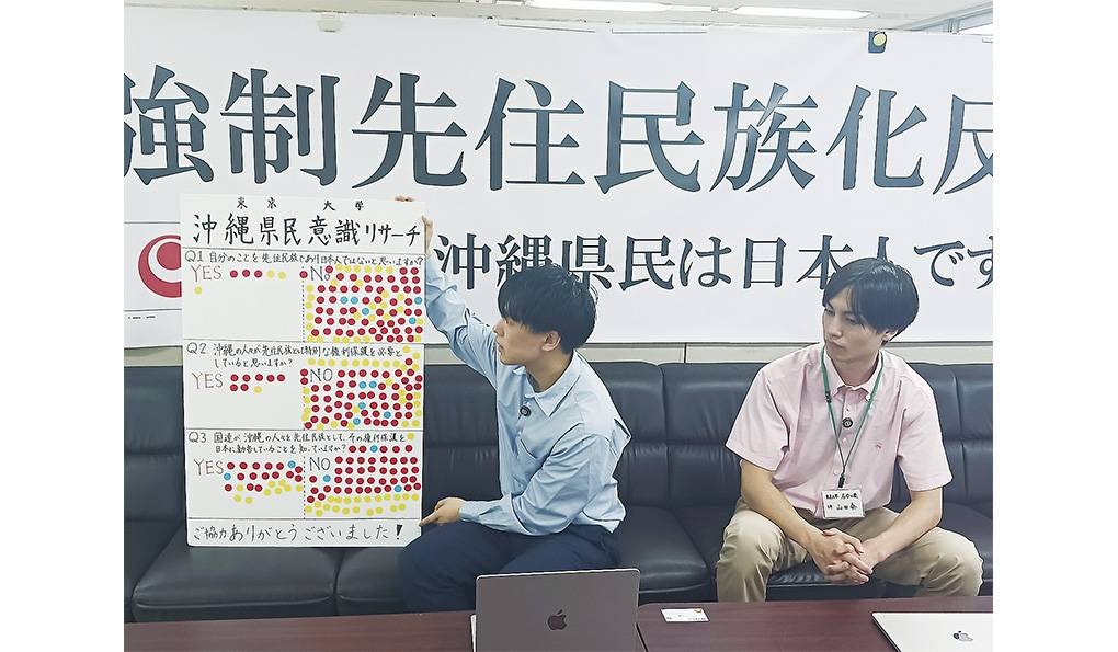 アンケートは約90人に行い「沖縄の人が先住民としての特別な権利を必要としていると思うか」という問いには9割以上が否定的だった。「沖縄県民は先住民族」とする国連勧告の存在を知っているのは3割程度だった。