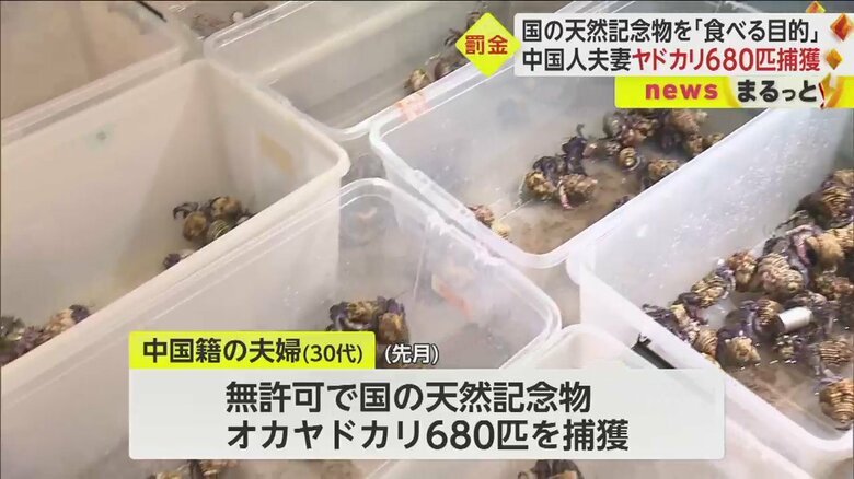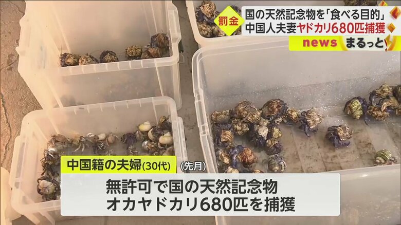 この事件は6月、中国籍の夫婦(30代)が許可を得ずに、国の天然記念物・オカヤドカリ680匹を捕獲し那覇市内で所持していたとして、文化財保護法違反の疑いで逮捕されたもの。