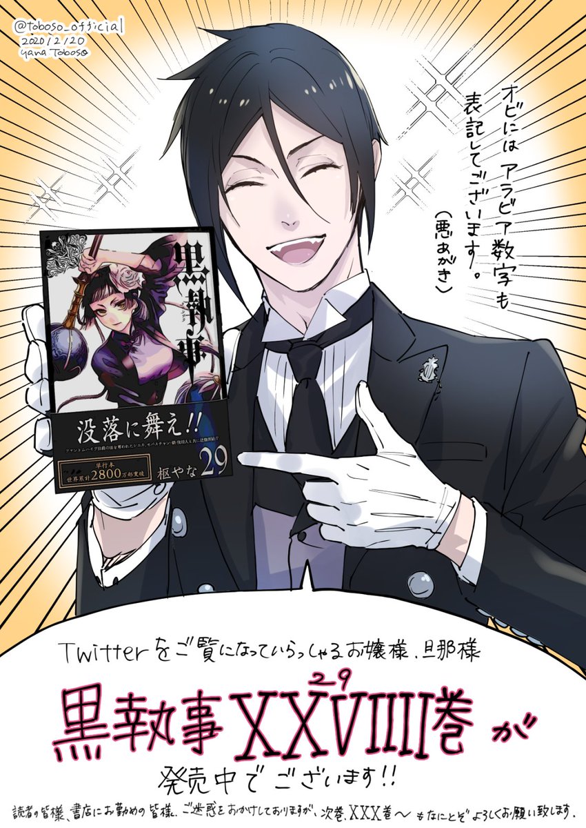 また「オビにはアラビア数字も表記してございます。」という台詞と共に、セバスチャンの描き下ろしイラストも投稿されました。