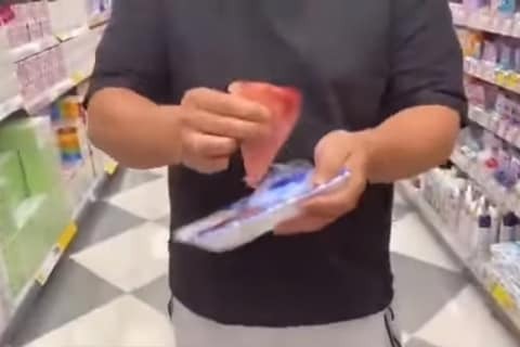 動画ではその後、空になった容器をレジに出し、「お腹が減っていたので食べてしまった」旨を伝えて、会計を済ませている。