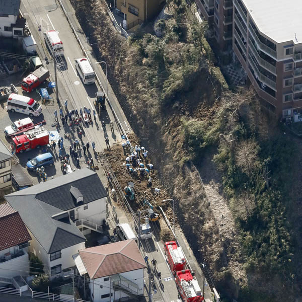 崩落現場は、5階建てマンションの下に位置する高さ20メートル、幅約30メートルの崖。地面から半分までの高さは石垣で補強されているものの、上半分は土がむき出し。そのむき出し部分が幅3~4メートルにわたって崩れ、女子高生をのみ込んだ。市によると、「土砂災害警戒区域に指定されているが、危険であるとの声は寄せられていなかった」(防災安全課)という。