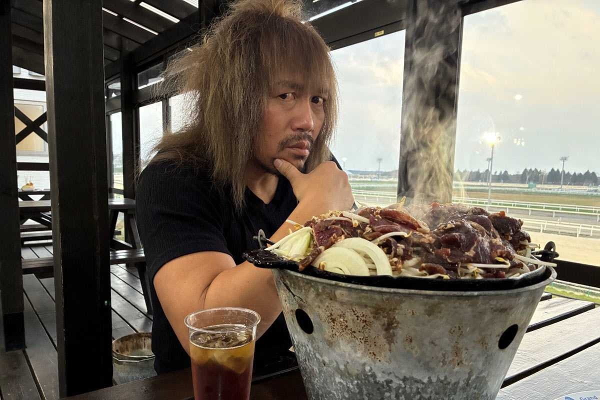 内藤は同日に開催された道営記念を盛り上げるべく、ゲストとして参加。到着早々、門別競馬場名物の「とねっこジンギスカン」に舌鼓を打った。