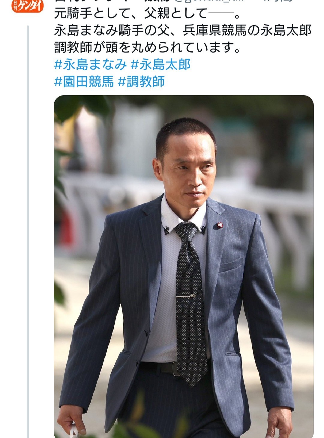 JRAの永島まなみ騎手=栗東・高橋康之厩舎=ら若手騎手が競馬開催中の通信機器(スマートフォン)の不適切使用で30日間の騎乗停止処分を受けたことを受け、永島の父である兵庫競馬に所属する永島太郎調教師(49)=兵庫競馬=が4日、「同じ職業についていながら、しっかり教えることができなかった」と、自らバリカンで短髪にしたという姿で反省の意を表した。