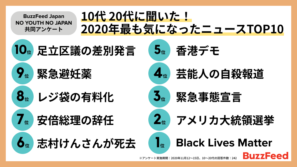 【若者】10代から20代の若者が一番注目したニュースTOP10 一位は「Black Lives Matter」
