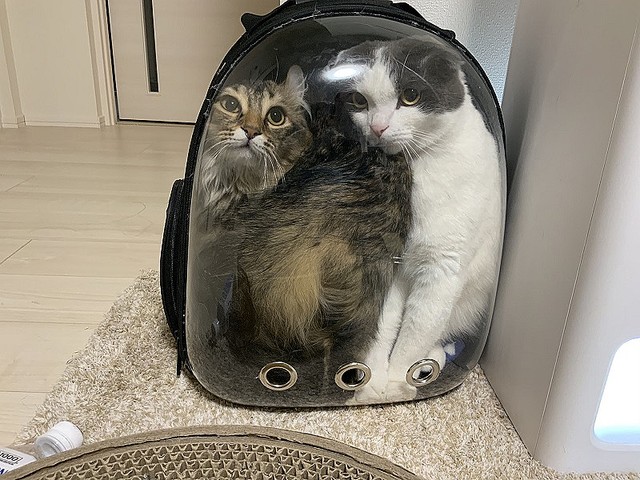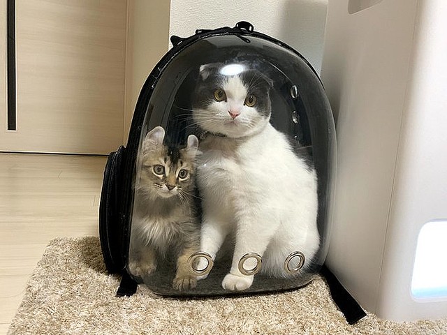 ちなみに、もちろん移動する際は別々の動物用バッグに入れているそうですが、ミルクくんとオリーブくんについて、飼い主さんは「いつも一緒にいて仲が良いです。戦っているかと思えば、そのあとは一緒に寝ています」と教えてくれました。2匹で入れなくなっても、いつまでも仲良しでいてほしいですね。(佐藤圭亮)