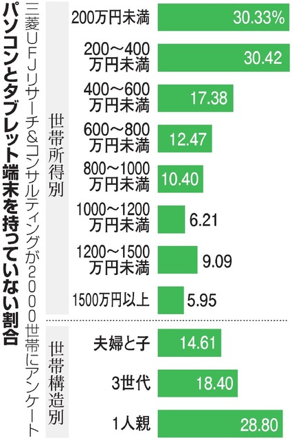 年収400万円未満の3割がパソコン・タブレットの使い方がわからないだけ