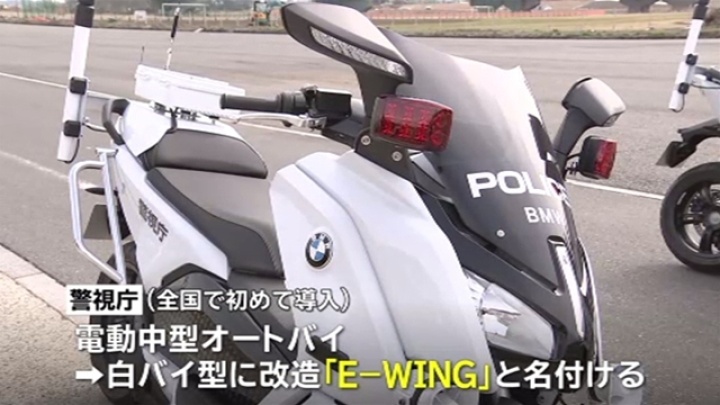 【警視庁】全国の警察で初めて導入した電動オートバイを白バイ型に改造、「E-WING」と名付る 東京マラソンでランナー先導