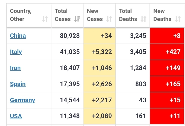 イタリア死亡者数 3405人https://www.worldometers.info/coronavirus/#countries