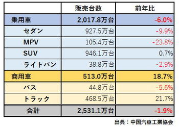 中国自動車協会の統計によると、2020年の中国の生産台数は2,522万台で前年比2.0%減、販売台数は2531万台で2019年比1.9%減。減少はそれぞれ5.5%と6.3%縮小しました。