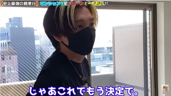 そこで今回、「【親孝行】関西で一人暮らしするおとんのためにマンション購入してきました」と題して公開した動画で、「最近おとんが住んでいる住所を入手したので、何かあげたいということで、都内のマンションの1室を僕が買ってその所有権をおとんにあげたい」と構想を明かした。自分で住まなくても、不動産収入で暮らしが楽になれば、という心遣いのようだ。
