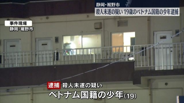 20日夜、静岡県裾野市でベトナム国籍の男性を刃物で刺し殺害しようとした疑いで警察は、19歳のベトナム国籍の少年を21日、逮捕しました。