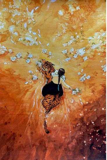 - 虎の腹にまたがっているのも意味深