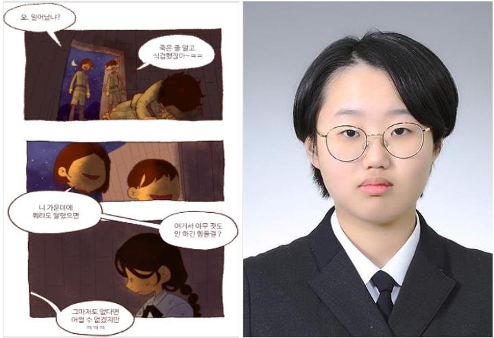 ▲ 女性家族部が今年の6~10月に『日本軍慰安婦被害者関連の青少年作品公募展』を行った結果、合計893点を受け付け、このうち優秀作品28点を選定して展示すると29日に明らかにした。写真は美術・デザイン部門の最優秀賞(国務総理賞)、釜山(プサン)景園高等学校のクォン・ソヘさん(右側)のマンガ作品、『ナビ(蝶)』。