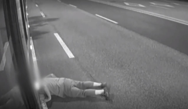23日、韓国メディア「YTN」が公開した映像によると、22日午後9時20分ごろ、ソウル松坡区文井洞(ソンパグ・ムンジョンドン)にある停留場で、1人の男性が停車したバスの後輪側にうつ伏せになって頭を入れるところが映っていた。