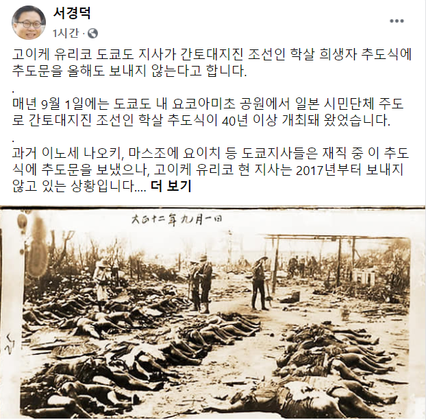 【韓国】徐ギョン徳教授、東京都の小池知事に関東大震災の朝鮮人犠牲者の追悼を要求