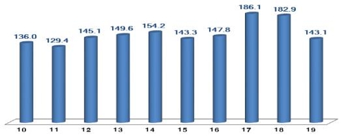 11月のICT輸入額は前年同月比6.9%減の90億9000万ドルで、輸出額から輸入額を差し引いた貿易収支は52億2000万ドルの黒字だった。