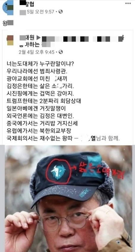 ▲今年2月、Facebookに投稿された文在寅大統領の非難文。この団体は今現在も共有中であり、内容には文大統領の人格冒涜に近い誹謗まで含まれている。ソース:プレシアン(韓国語)
