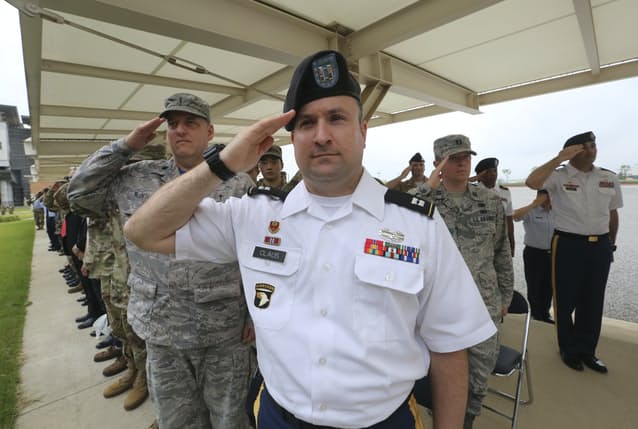在韓米軍司令部の開所式で敬礼する米兵ら(2018年6月、京畿道・平沢)=AP【ソウル=恩地洋介、ワシントン=永沢毅】米国務省当局者は7日、協議が長引いてきた在韓米軍駐留経費を巡る交渉について、韓国側が負担割合を増やす内容で合意したと明らかにした。負担割合を定める協定は2019年末から期限切れとなっていた。