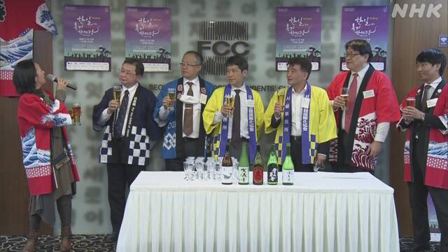 日本文化に慣れ親しんでもらおうと、韓国の首都ソウルで、外国メディアの記者などに日本酒の利き酒を楽しんでもらう催しが開かれました。