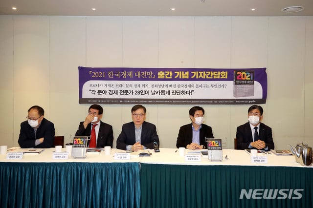 ▲21日午前ソウル中区で開かれた「2021韓国経済の展望」出版記念懇談会に参加した共同著者./写真=ニューシス