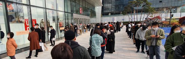 13日午前10時30分ごろ、ソウル・蚕室にある「ユニクロ」ロッテワールドモール店の前。この日、2時間前から開店を待つ長蛇の列は数百メートルにも及んだ。