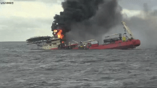 毎勿島海上で火事が起きた多目的海洋作業船、最終的に沈没