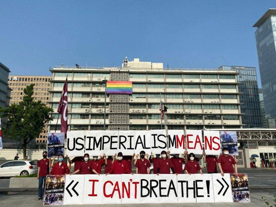 今月3日、ソウル光化門(クァンファムン)米国大使館の前で「米国帝国主義は『息ができない』(US IMPERIALISM MEANS,I CAN’T BREATHE!)」というピケをもってデモを行った反米団体に向かい、ハリー・ハリス駐韓米国大使が4日「このデモに同意しないが、民主的な、ここ韓国で平和にデモできる彼らの権利を尊重する」とツイッターに書き込んだ。