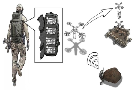 ▼偵察と同時に移動中の車両も追跡・攻撃できる小型の偵察・攻撃複合型ドローン――など、本格的な無人戦闘時代に備えた兵器システムが多数含まれている。