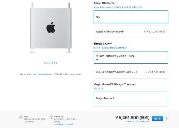 Appleは12月11日、Macintoshのハイエンド機「Mac Pro」を発売しました。ベースの価格から59万9800円(税別)というプロ仕様ですが、スペックをマシマシにしていくと高級輸入車が買えてしまう価格になってしまうことがTwitterなどで話題になっています。