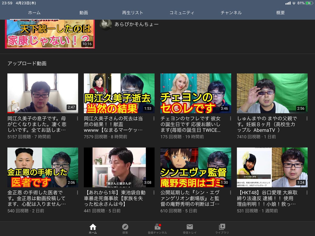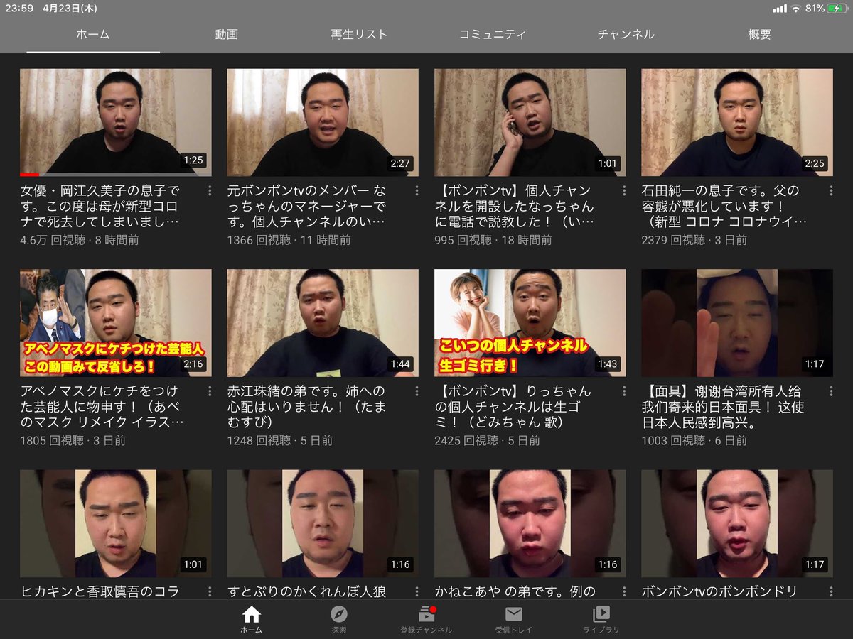 【YouTube】岡江久美子の息子を名乗るyoutuber達は志村けんの息子だったり石田純一の息子だったり金正恩の医者だったりする