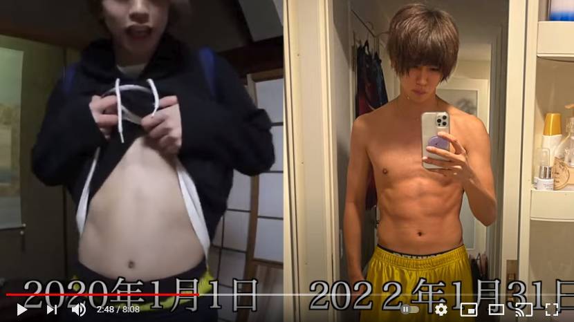 腹筋を割るには、食生活の改善や有酸素運動も必要と知ったそうで、はじめしゃちょーは、ボディビルダーとか筋トレやってる人って、ホントに凄いなって思った1年でした