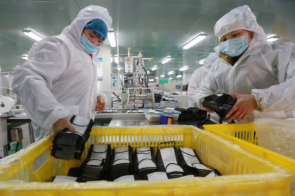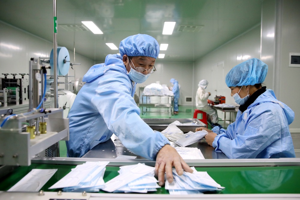 全力を挙げて市場への製品供給を確保、新型コロナウイルスによる肺炎の予防・抑制に向けて貢献している。(c)Xinhua News/AFPBB News