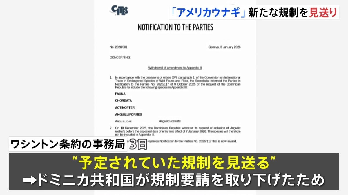 かば焼きなどの加工品で日本でも多く食べられている「アメリカウナギ」ですが、今月から予定されていた新たな規制が行われないことになりました。