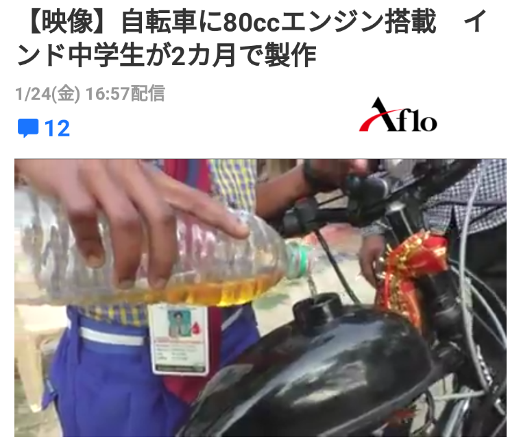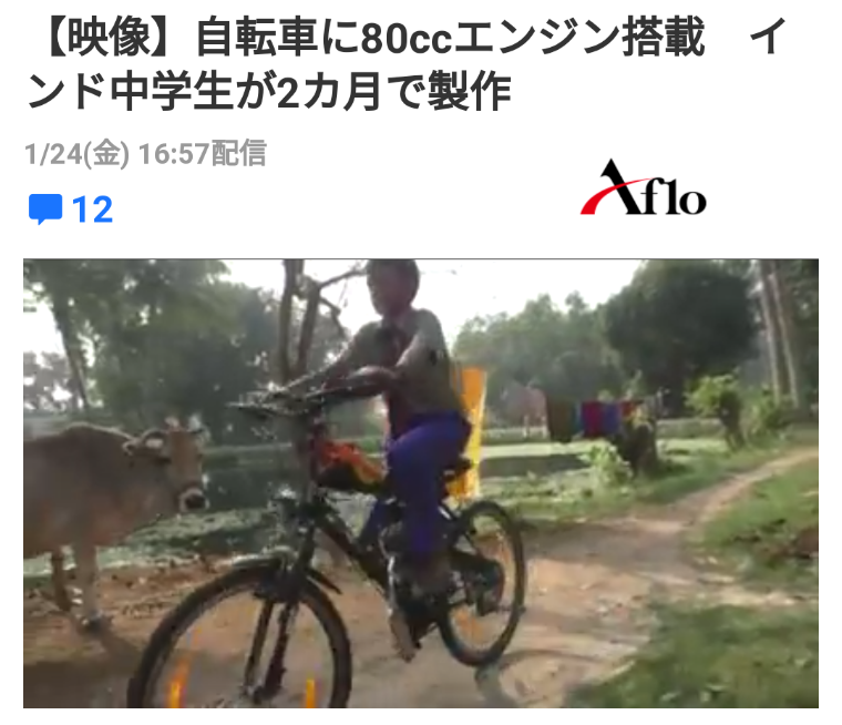 【映像】自転車に80ccエンジン搭載 インド中学生が2カ月で製作