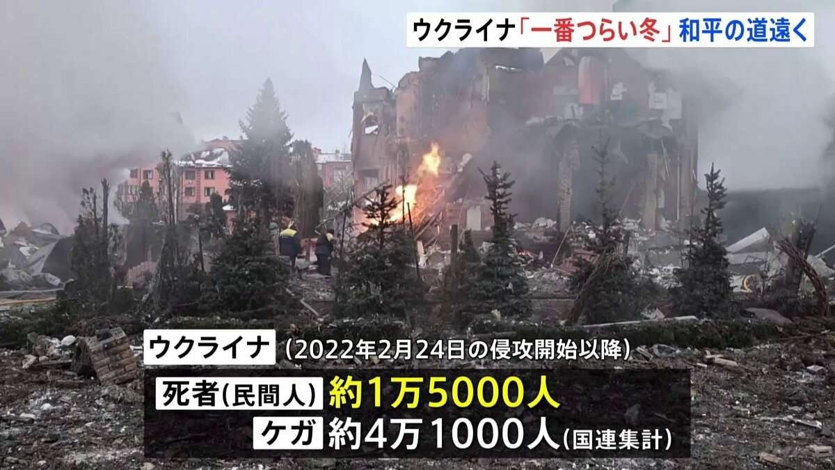 「これまでで一番つらい冬です。全てのウクライナ人にとって、きっと」和平協議については、ウクライナとロシア、アメリカの3か国が1月以降、高官会合を断続的に開催しています。ただ、領土問題やウクライナが求める「安全の保証」をめぐって主張の隔たりは大きく、和平実現への道筋は見通せないままです。