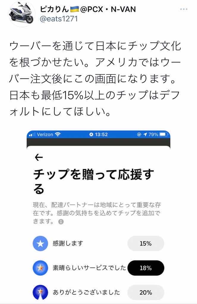 - この配達員が外食とかで毎回チップを払ってるならちょっと考えてもいい