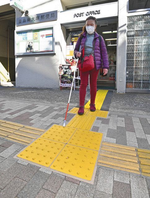 「たかが2メートルでも、私たちには大事な情報源」。11月上旬、豊島南大塚郵便局(豊島区)の前に誘導ブロックが敷かれ、近くに住む全盲の武井悦子さん(65)は声を弾ませた。