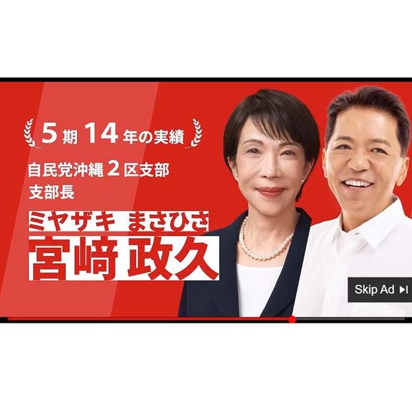 日刊ゲンダイの調べで問題が発覚したのは、自民党の宮崎政久衆院議員(沖縄2区)の陣営。選挙期間中に有料のYouTube広告を配信していた疑いがある。