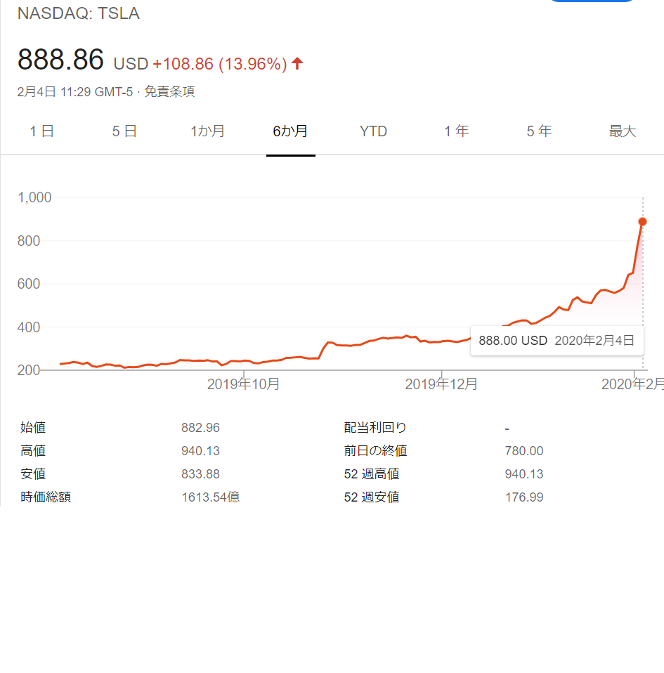 ニュースが流れるとテスラの株価は急騰した。 - 30 名前:押しボタン式の匿名希望者 投稿日時:2020/02/05(水) 02:13:36.60 ID:ui20NJne0