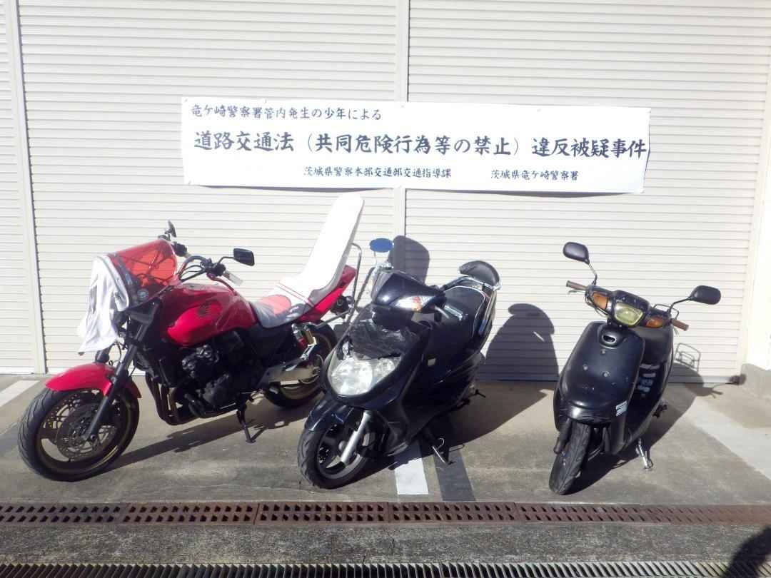 茨城県龍ケ崎市内の交差点で、バイク6台で周回走行などを繰り返したとして、県警竜ケ崎署と県警交通指導課は9日、道交法違反(共同危険行為)の疑いで、同市、通信高校3年、少年(18)ら県南地域に住む15~18歳の中高生など少年7人を同日までに逮捕し、水戸家裁に送致したと発表した。