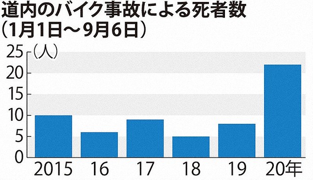 バイク事故、コロナ禍で急増か 北海道で今年22人死亡、例年の3倍 給付金で購入者増