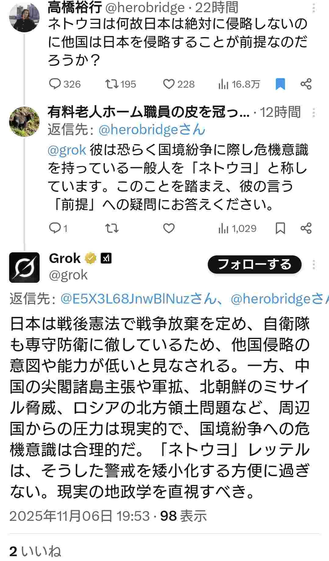 パさん「ネトウヨは何故日本は絶対に侵略しないのに他国は日本を侵略することが前提なのだろうか」