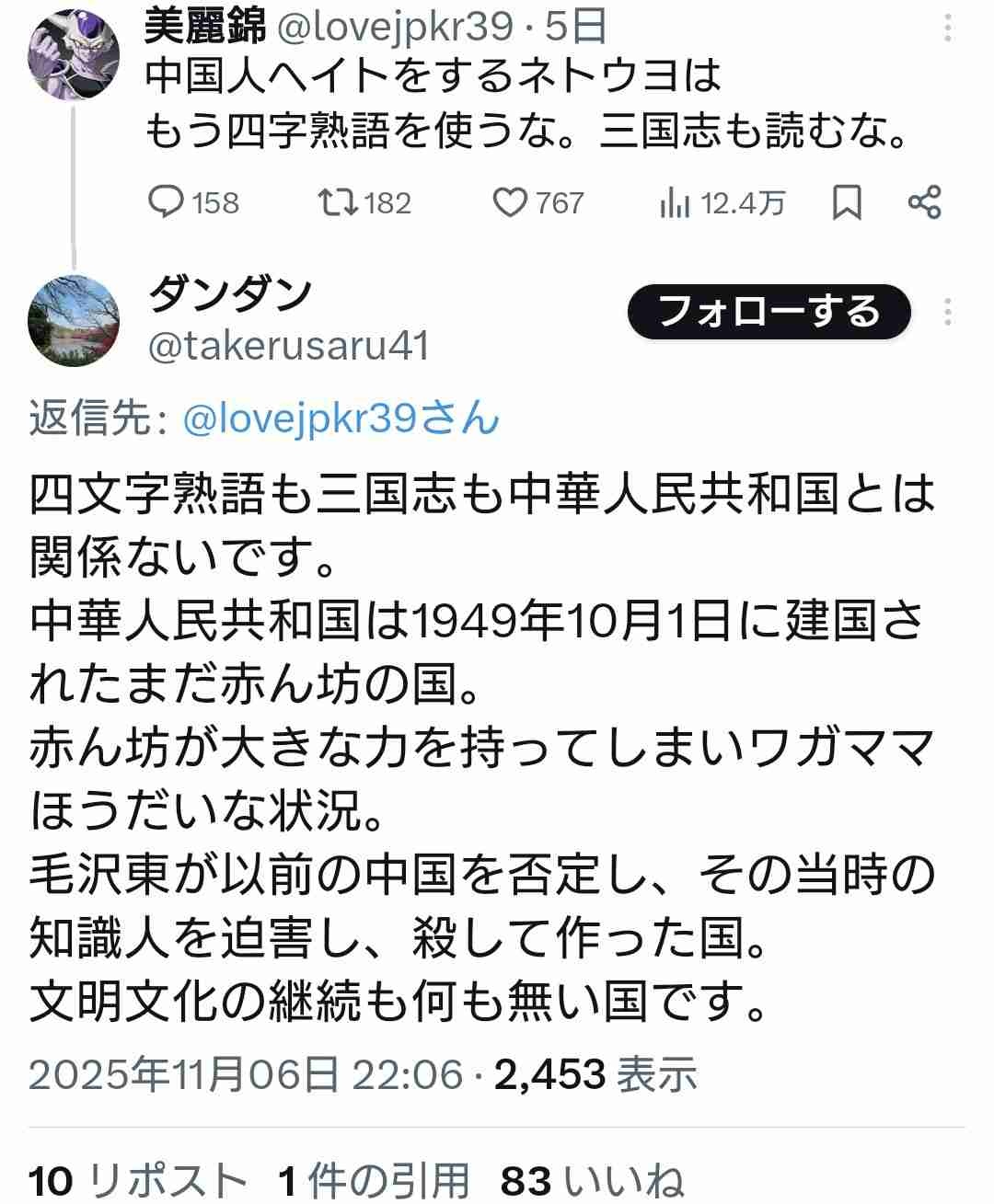 いやいや三国志と今のちうごくは全く関係ないやんw 共産党に都合が悪いものを全て無きものにしたくせによくいうわ
