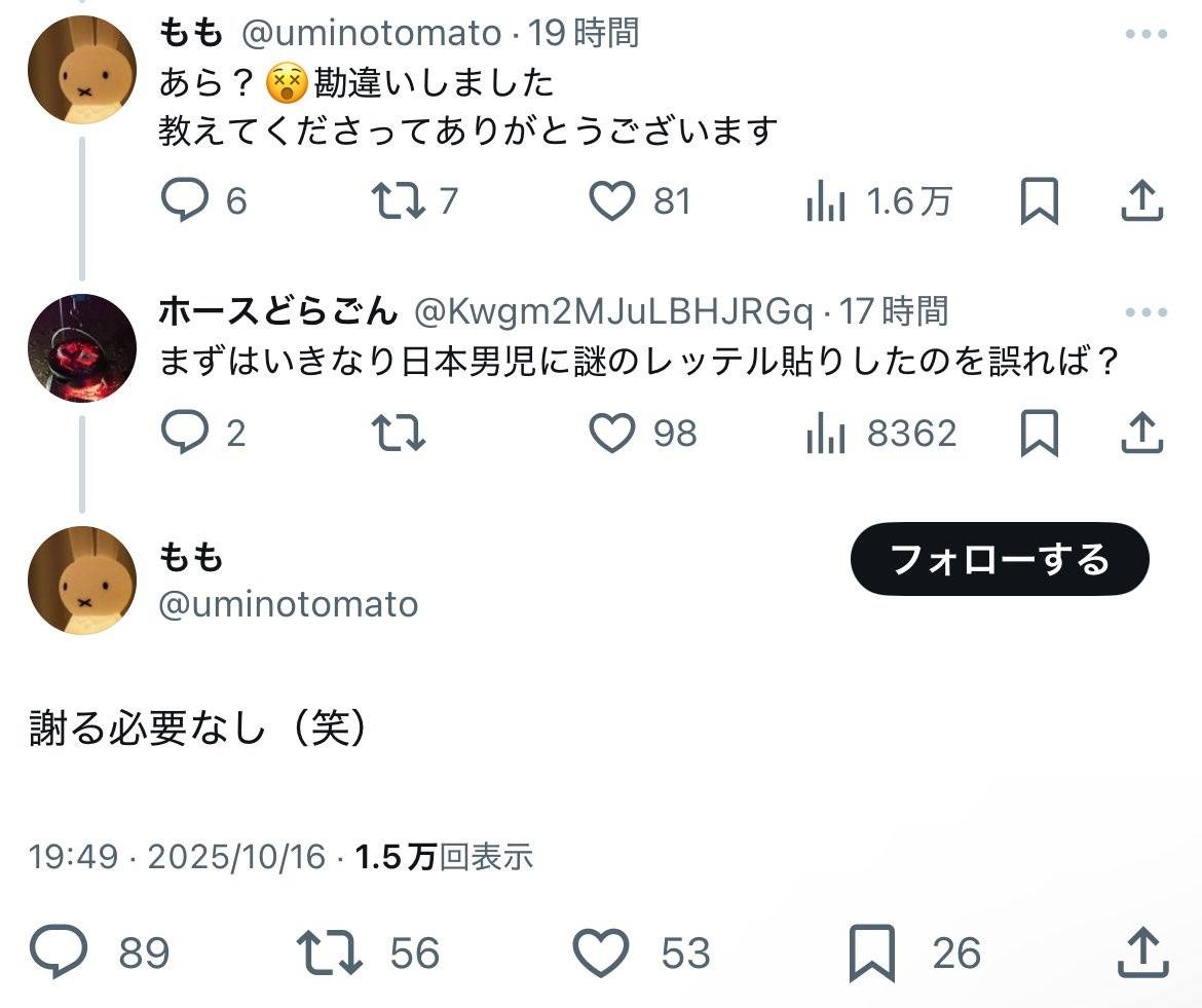 14 名前:押しボタン式の匿名希望者 投稿日時:2025/10/17(金) 20:32:25.78 ID:lsszoNbH0