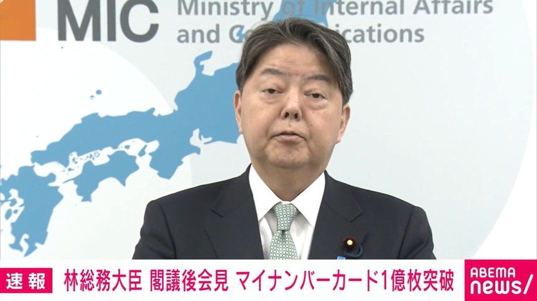 林芳正総務大臣は5日の記者会見で、マイナンバーカードの保有枚数が1億枚を超えたと発表した。