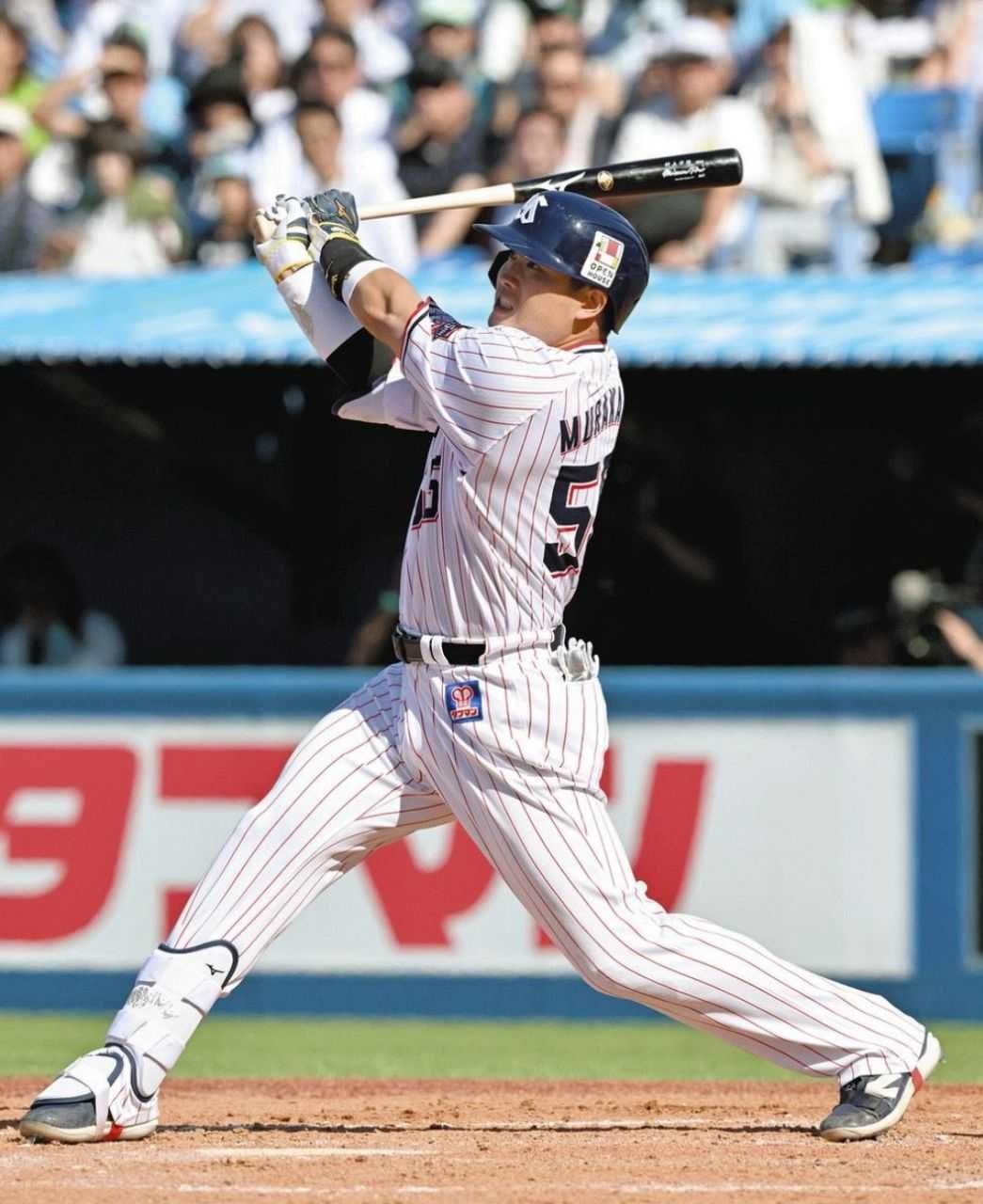 村上は2018年に熊本・九州学院高からヤクルトに入団。2年目には36本塁打を放つと、5年目の22年にはNPBの日本選手最多56本塁打をマーク。この年は3割4分6厘、134打点を挙げ、史上最年少の22歳で三冠王を獲得した。