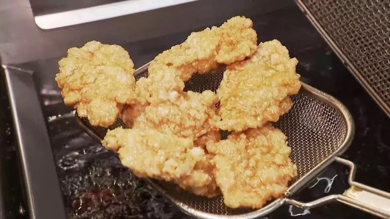 東京都内のから揚げ店では、お昼時を前に次々と鶏肉が揚げられていきます。