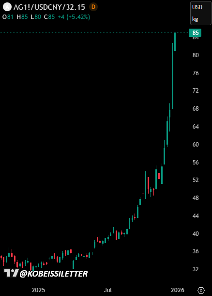 BREAKING: China will be imposing export restrictions on silver beginning in 5 days, on January 1st.