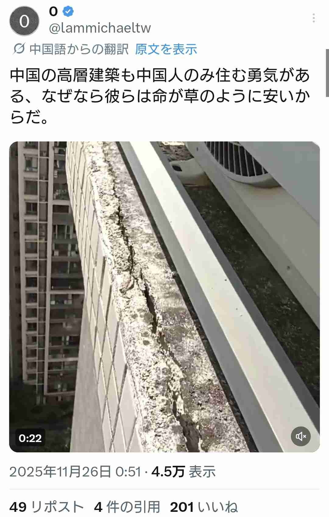 マンションや橋にひびが入ってるのは中国の日常だけど
